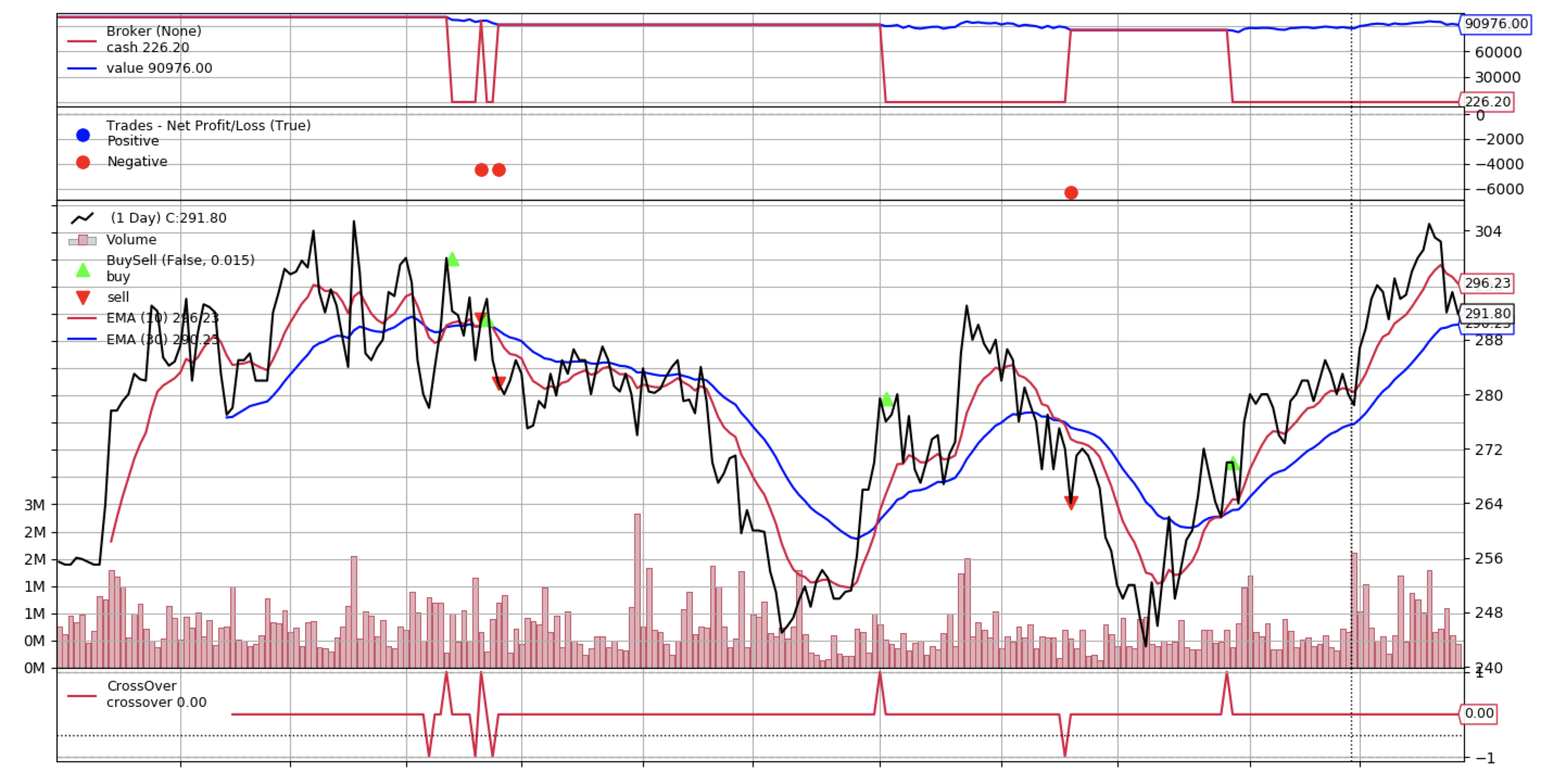 backtest('emac', df, fast_period=10, slow_period=30)