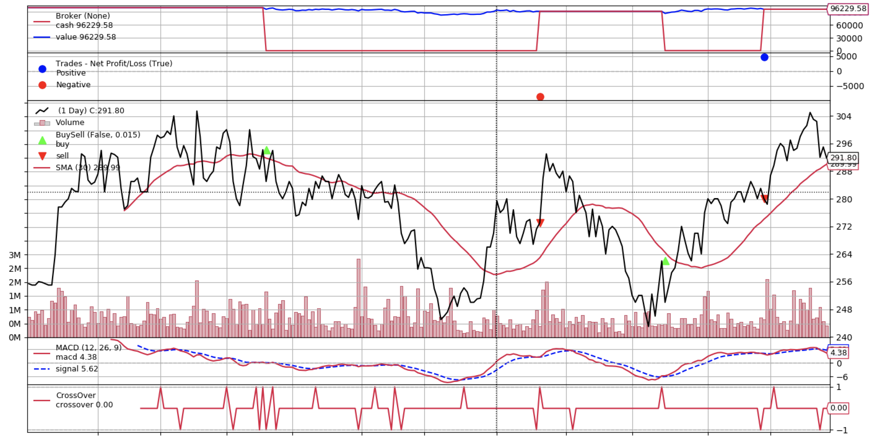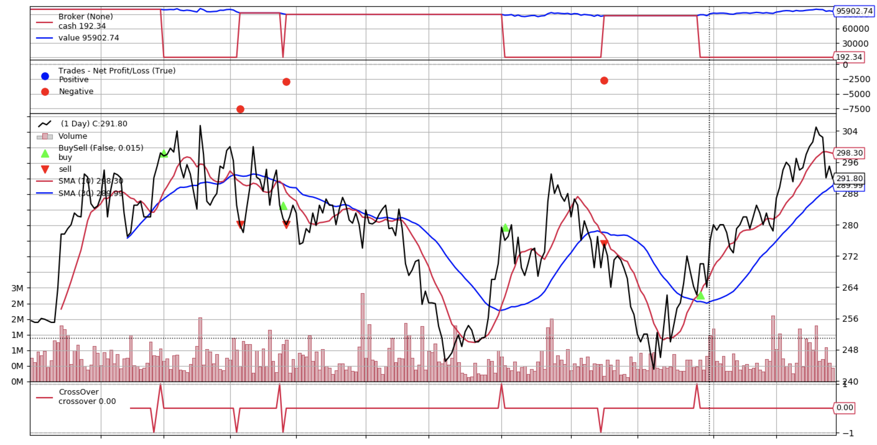 backtest('smac', df, fast_period=10, slow_period=30)