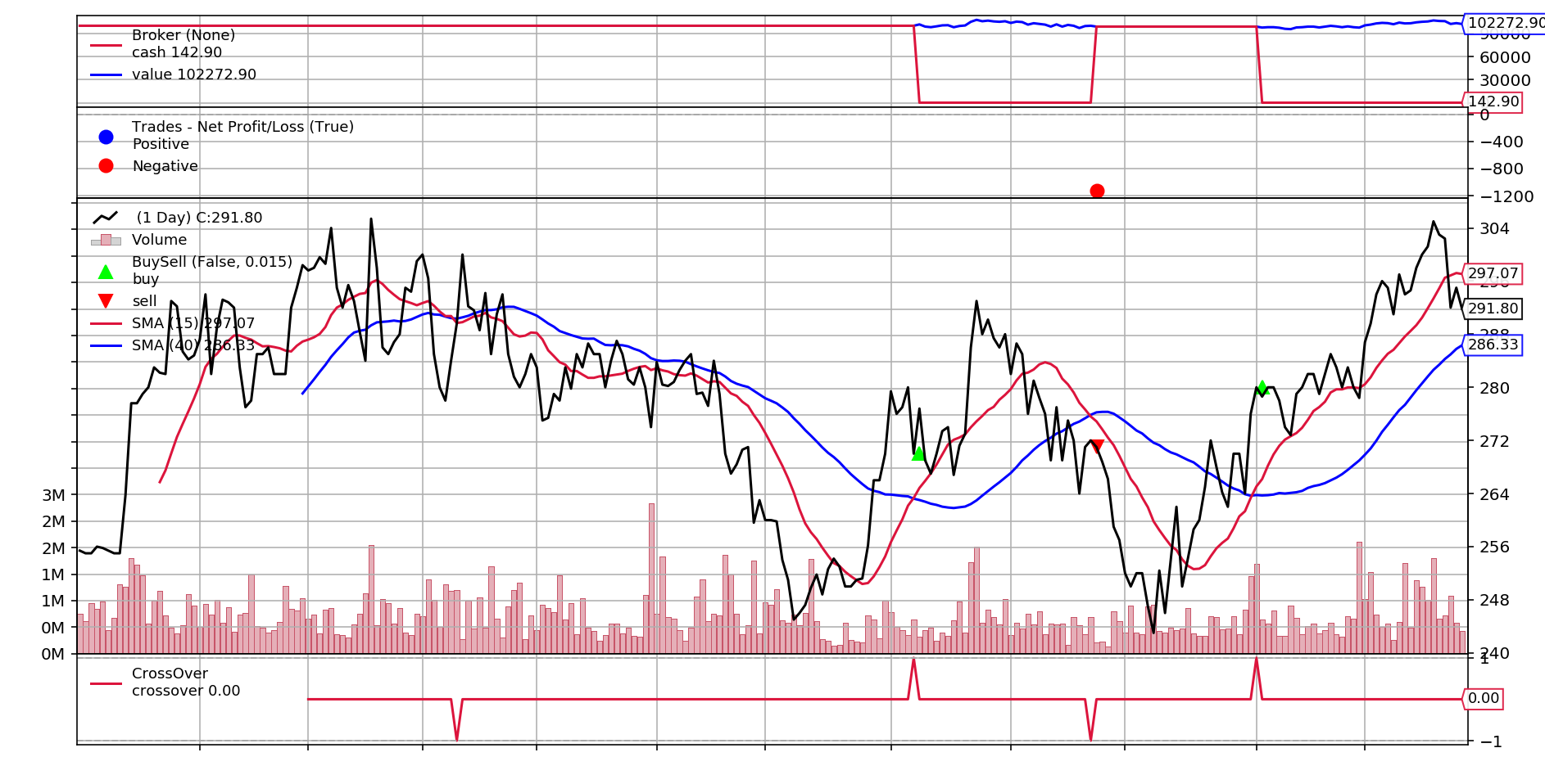 backtest('smac', df, fast_period=15, slow_period=40)